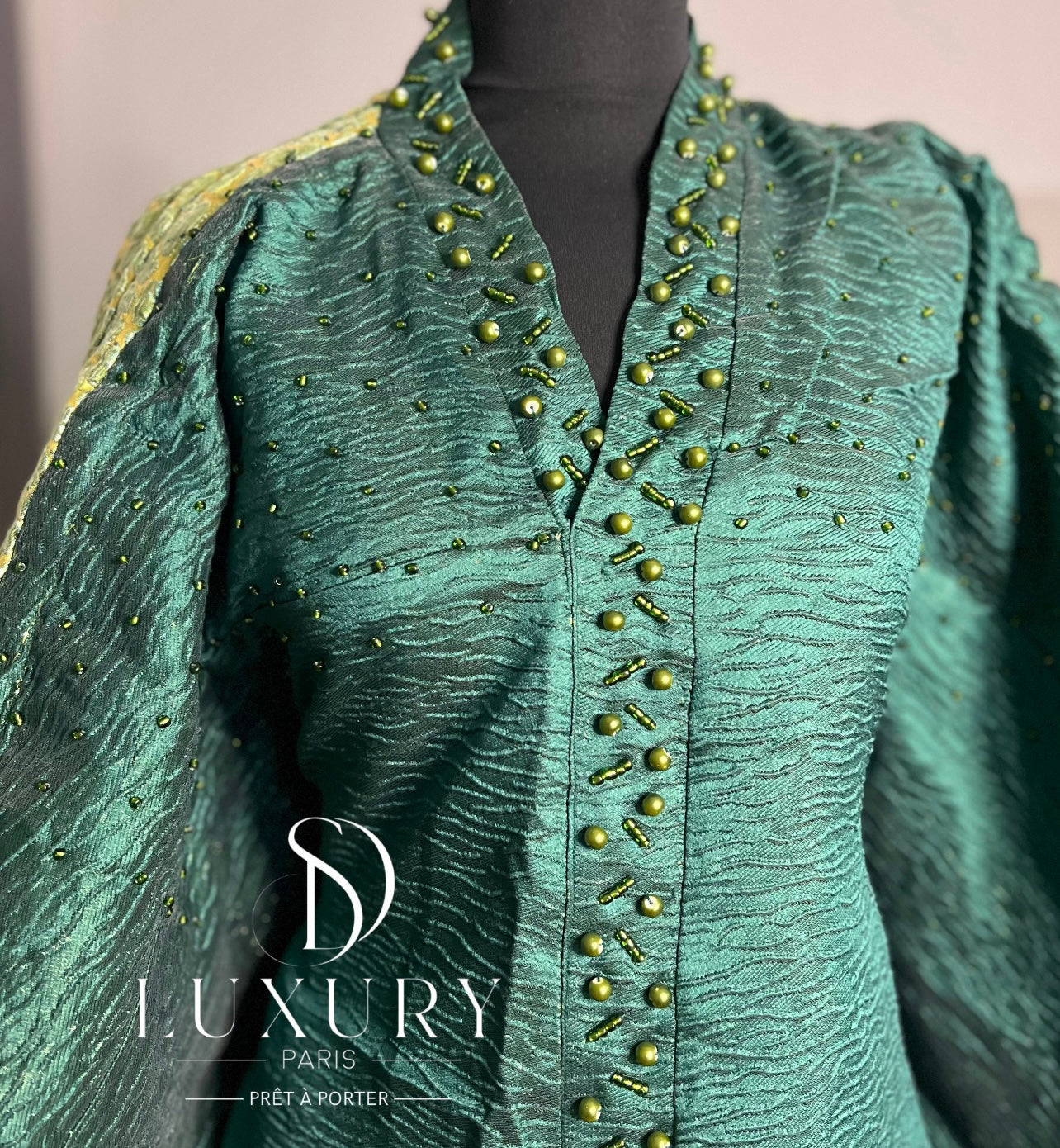 - Chez SD ~ LUXURY nous sommes soucieux du détails , c’est pourquoi : Ce boubou se distingue par un col enjolivé de magnifiques perles sur tout le long du col et de la poitrine, qui ont été réalisés à la main par nos artisans pour une touche d'authenticité unique.