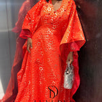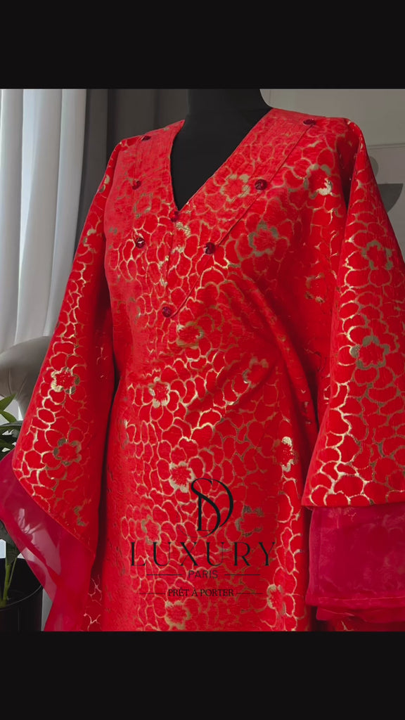 - Un boubou en brocard/ velours élégant et brillant, allié à un tissu organza soyeux.