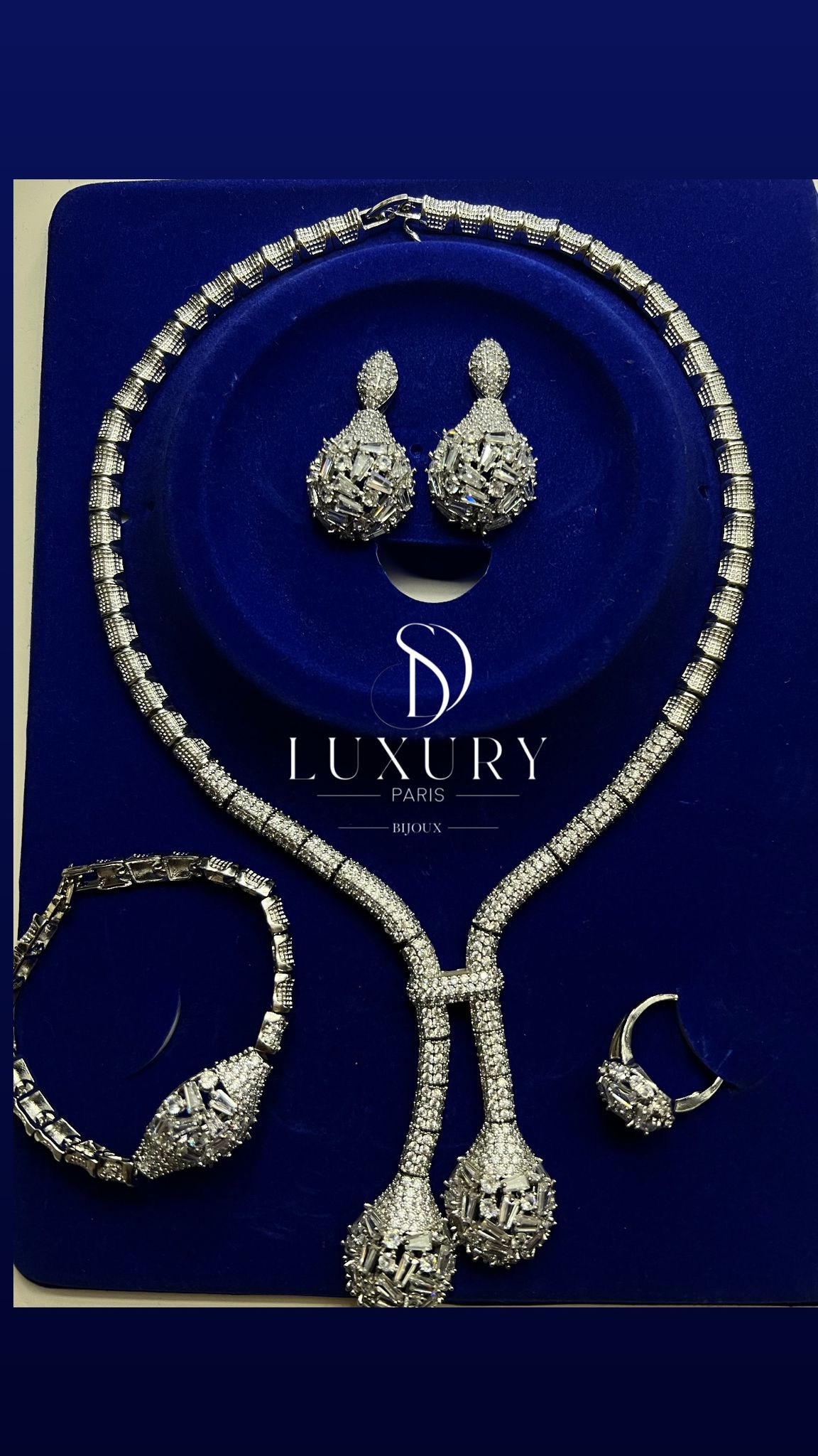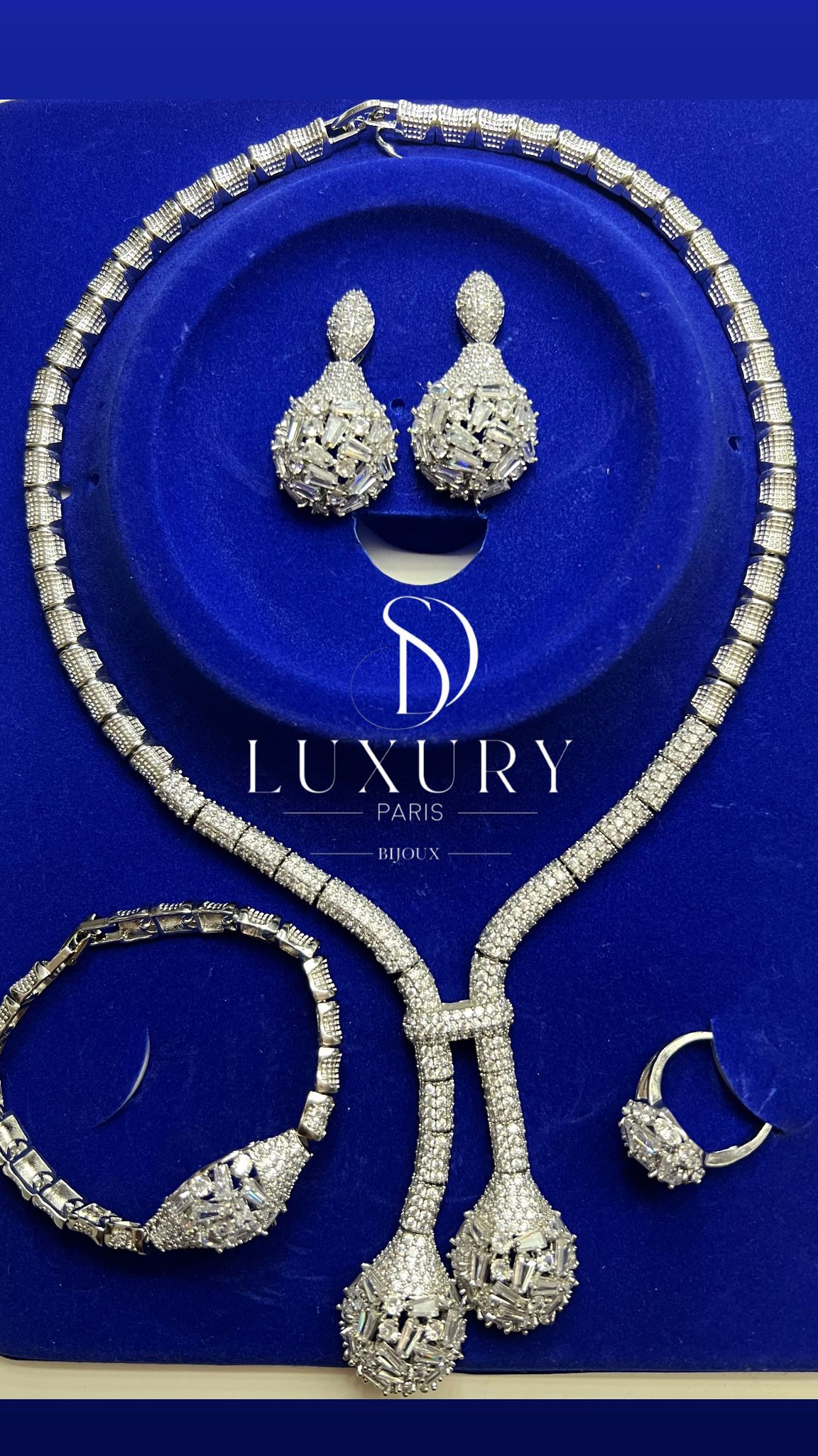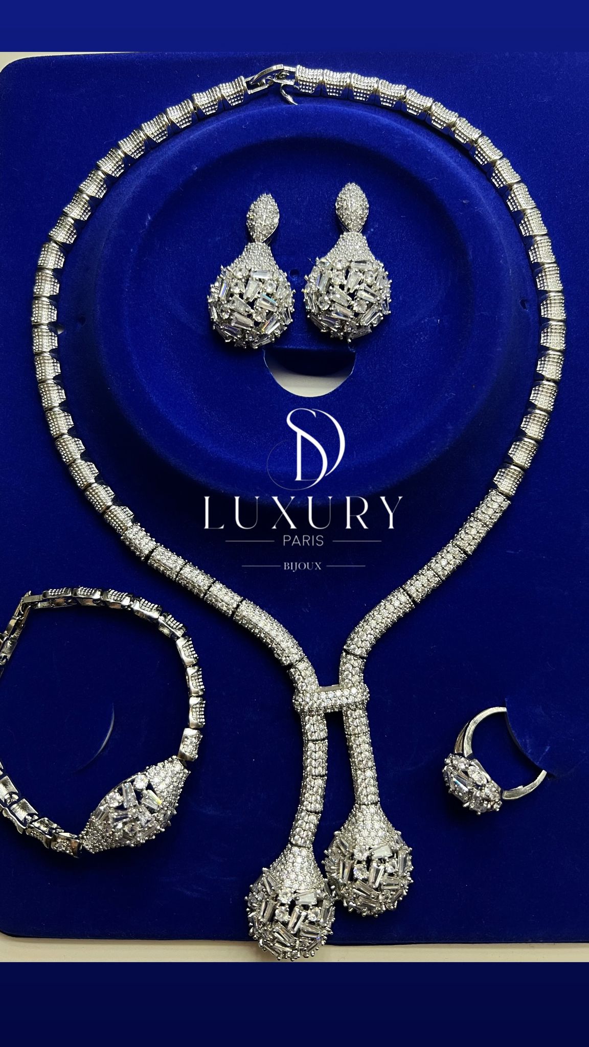 Inclus avec : Collier, Boucle d’oreilles, Bague et bracelet.