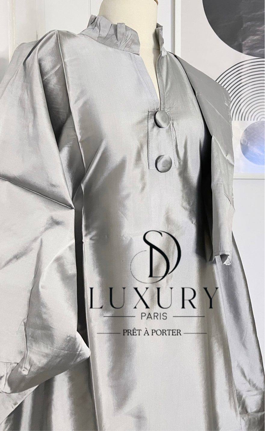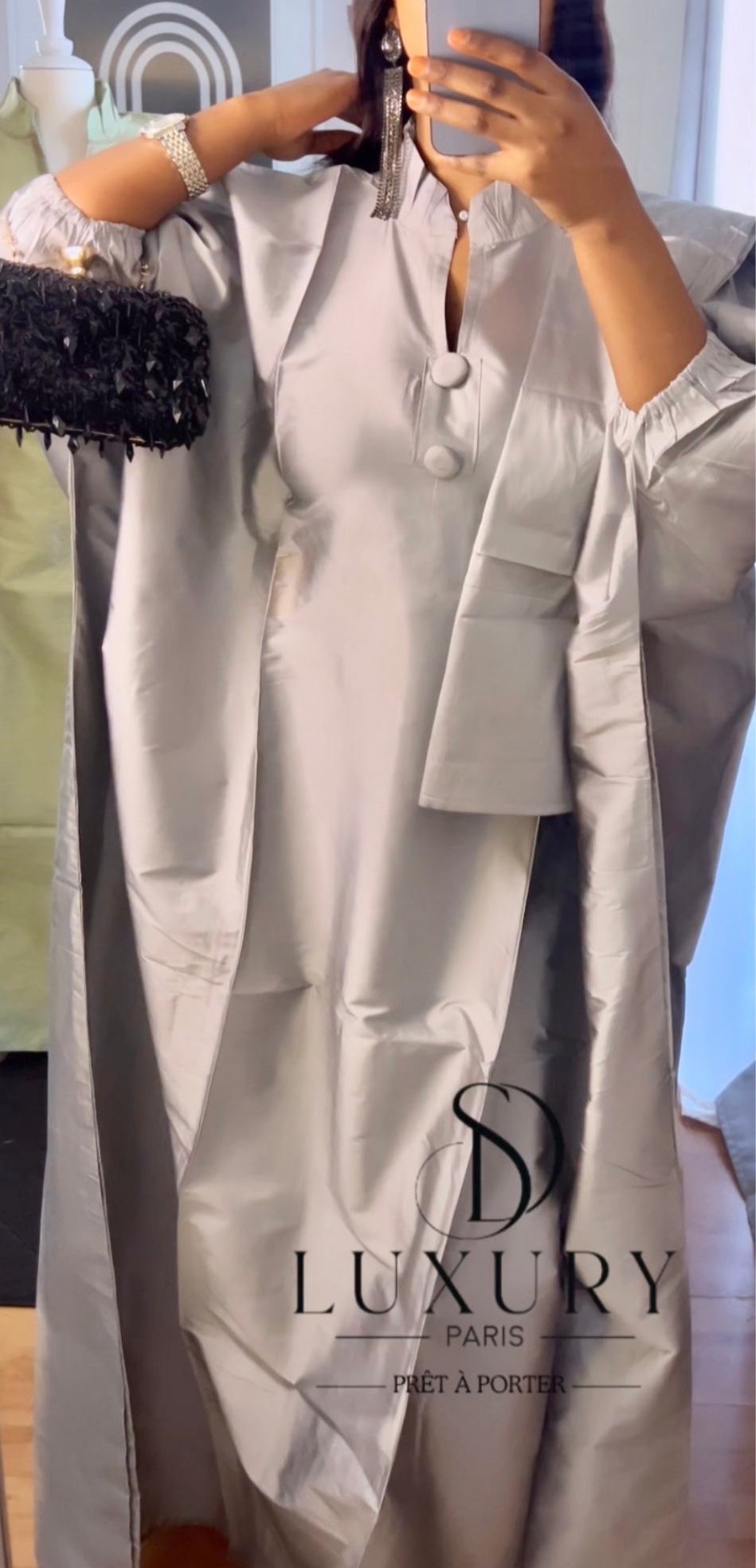 Caractéristiques : Bubu en matière Soie/Chantoum, fournis avec foulard.