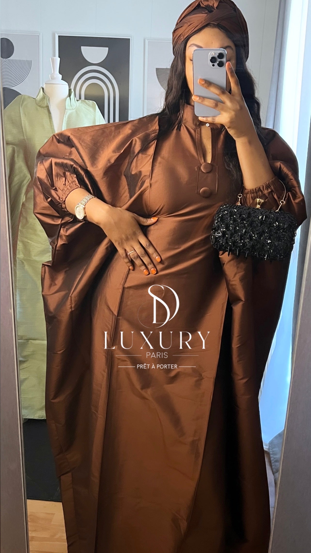 Caractéristiques : Bubu en matière Soie/Chantoum, fournis avec foulard.