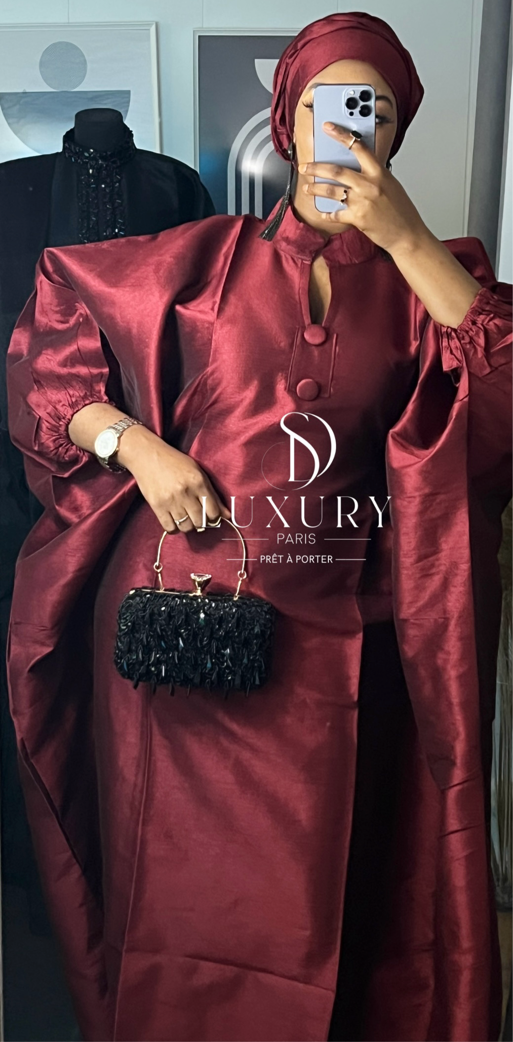 Caractéristiques : Bubu en matière Chantoum, fournis avec foulard.