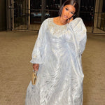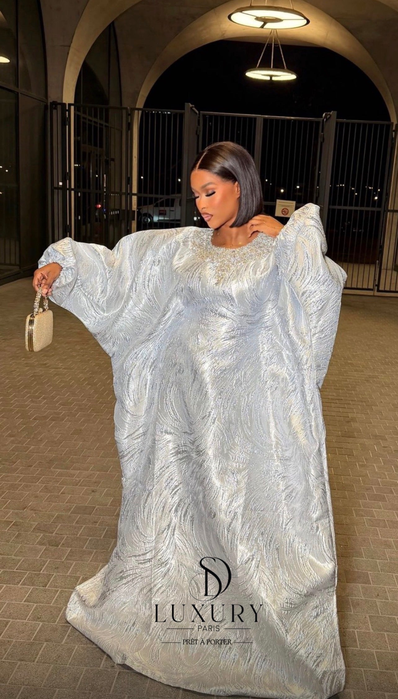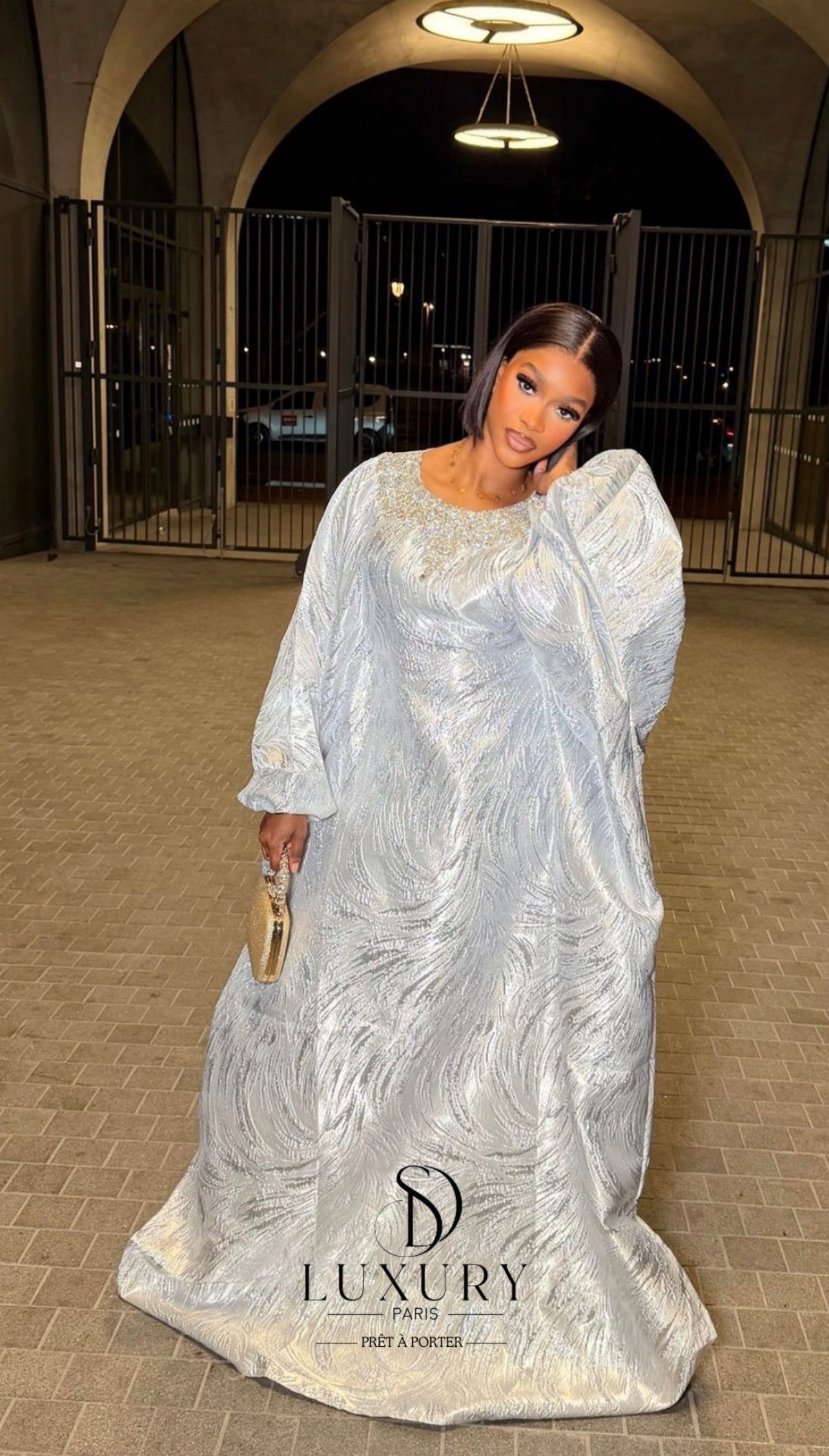 Élégant et brillant. QUALITÉ PREMIUM. - Le haut de ce boubou se distingue par un col , orné de somptueux cristaux. Les manches bouffantes ajoutent une touche d'élégance à votre boubou.