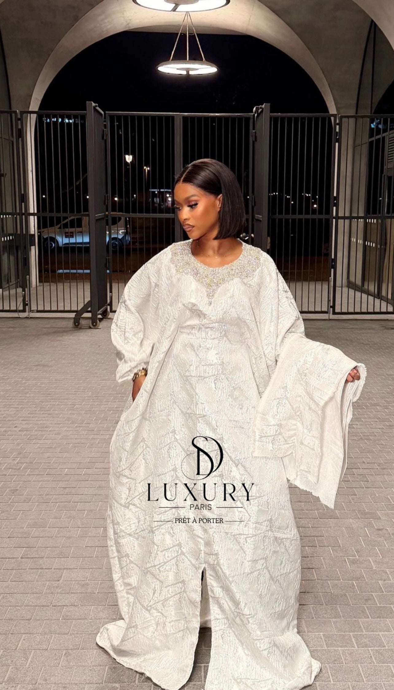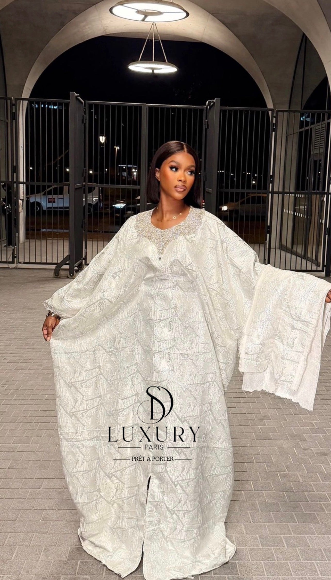 Élégant et brillant. QUALITÉ PREMIUM. - Le haut de ce boubou se distingue par un col , orné de somptueux cristaux. Les manches bouffantes ajoutent une touche d'élégance à votre boubou.