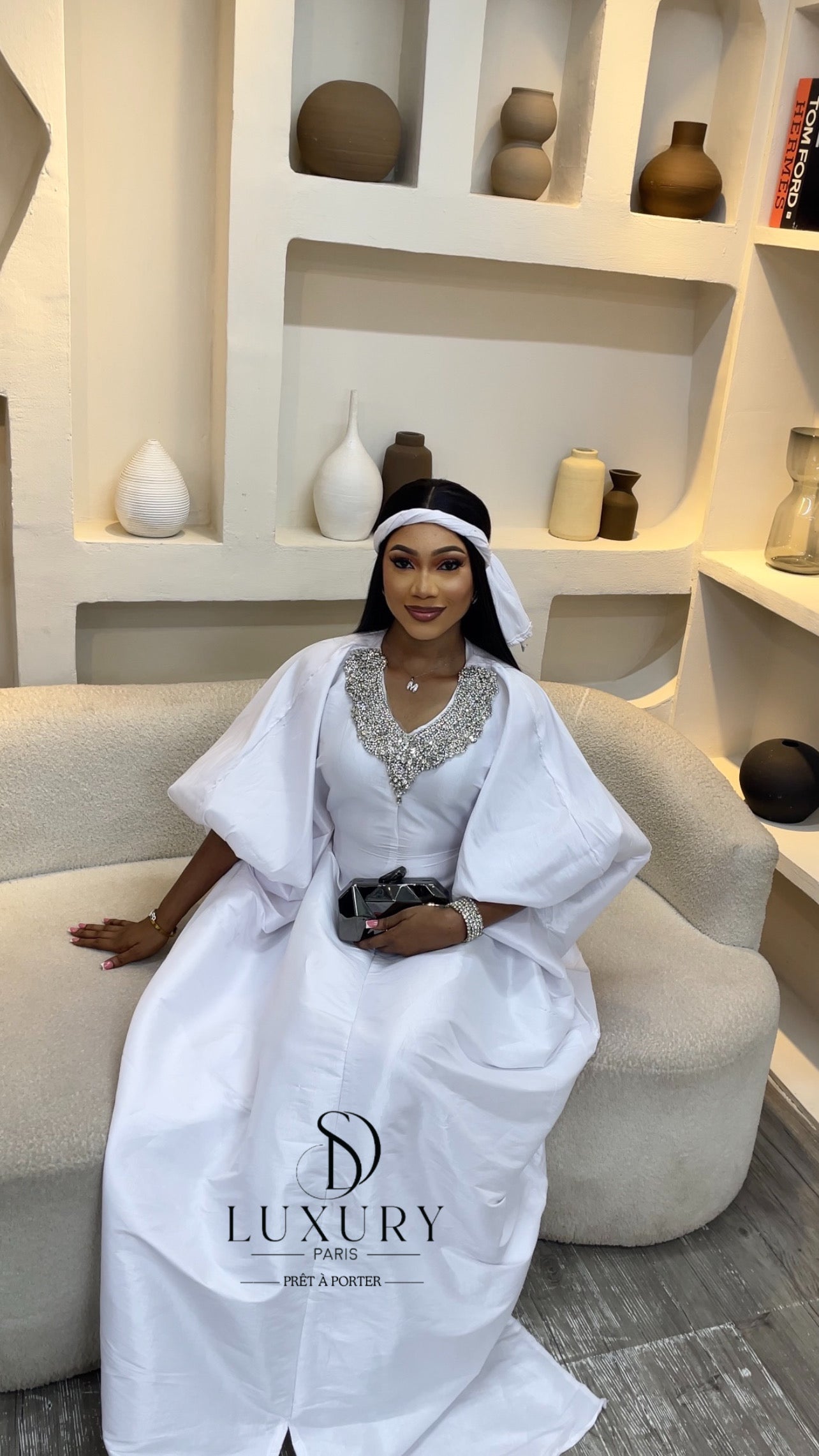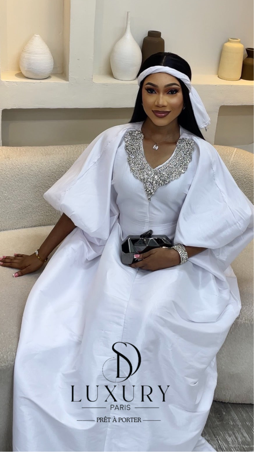 Élégant et brillant. QUALITÉ PREMIUM. - Le haut de ce boubou se distingue par un col , orné de somptueux cristaux. Les manches bouffantes ajoutent une touche d'élégance à votre boubou.