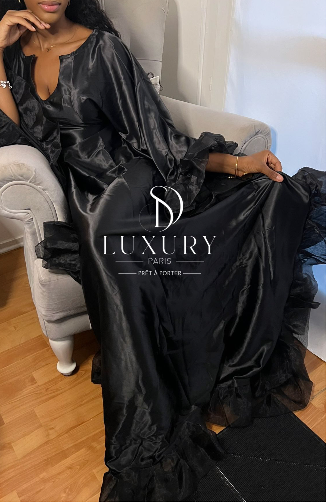 Caractéristiques : Robe en matière Soie , fournis avec foulard.