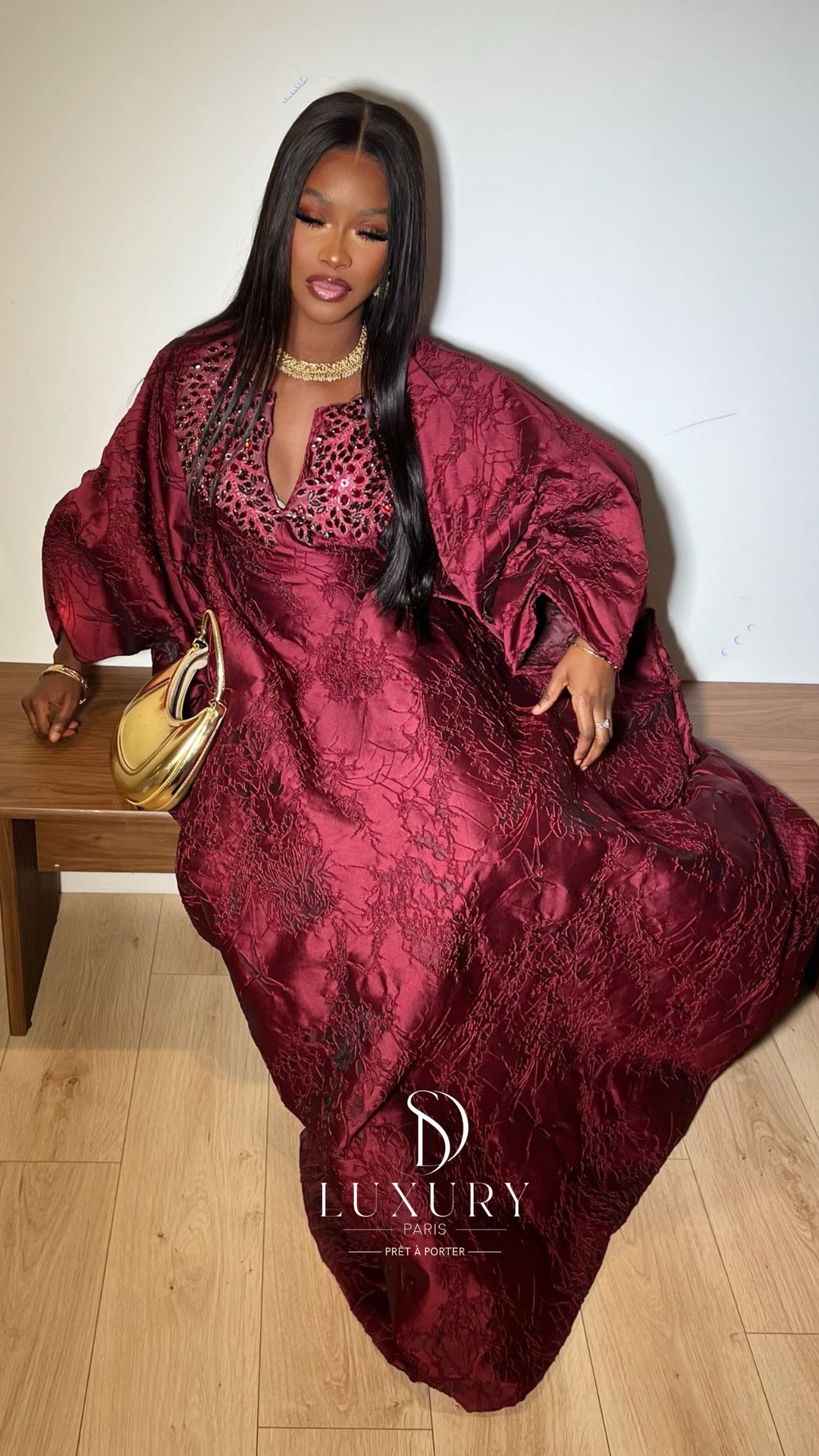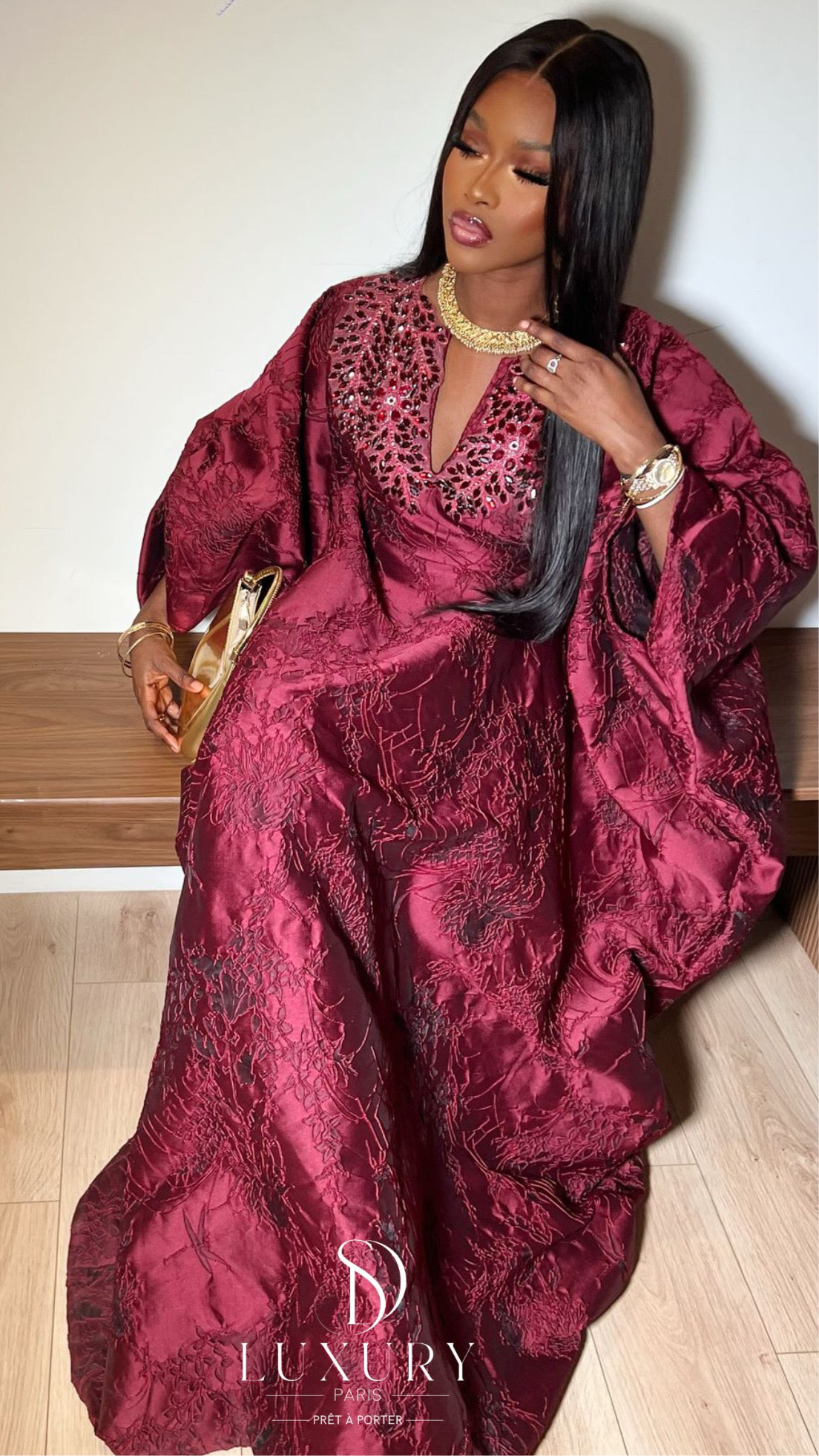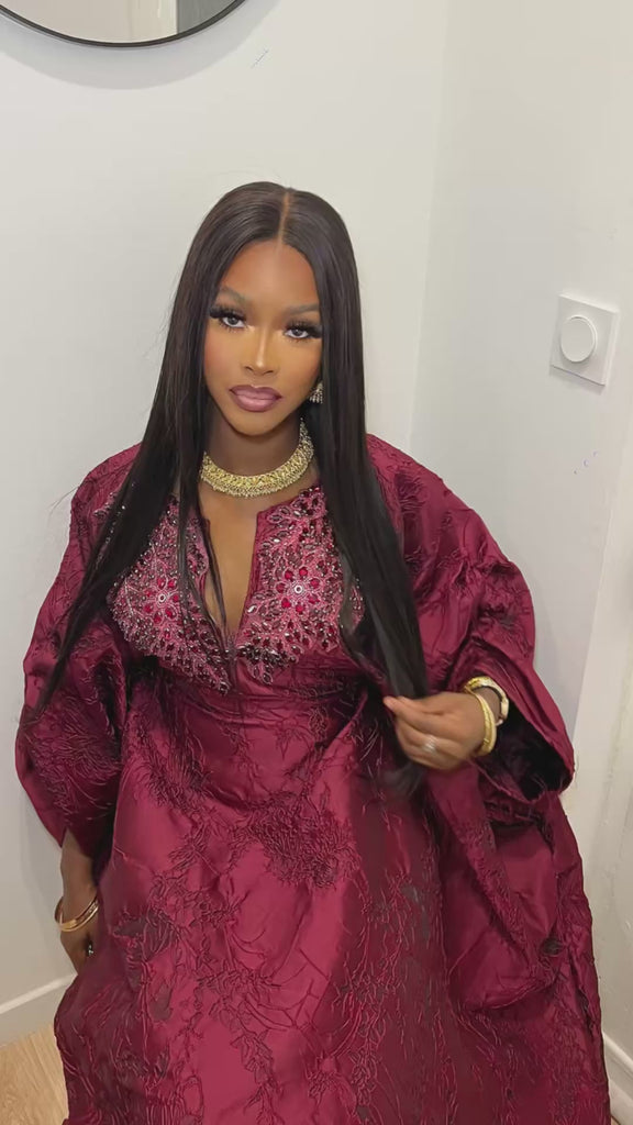 - Le haut de ce boubou se distingue par un col , orné de somptueux cristaux. Les manches sont finement travaillées et ajoutent une touche d’élégance à votre boubou.