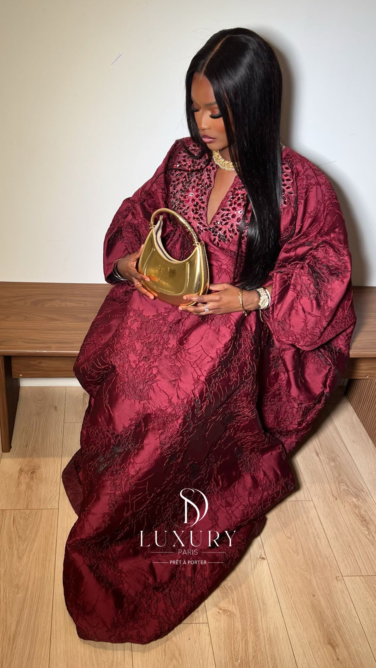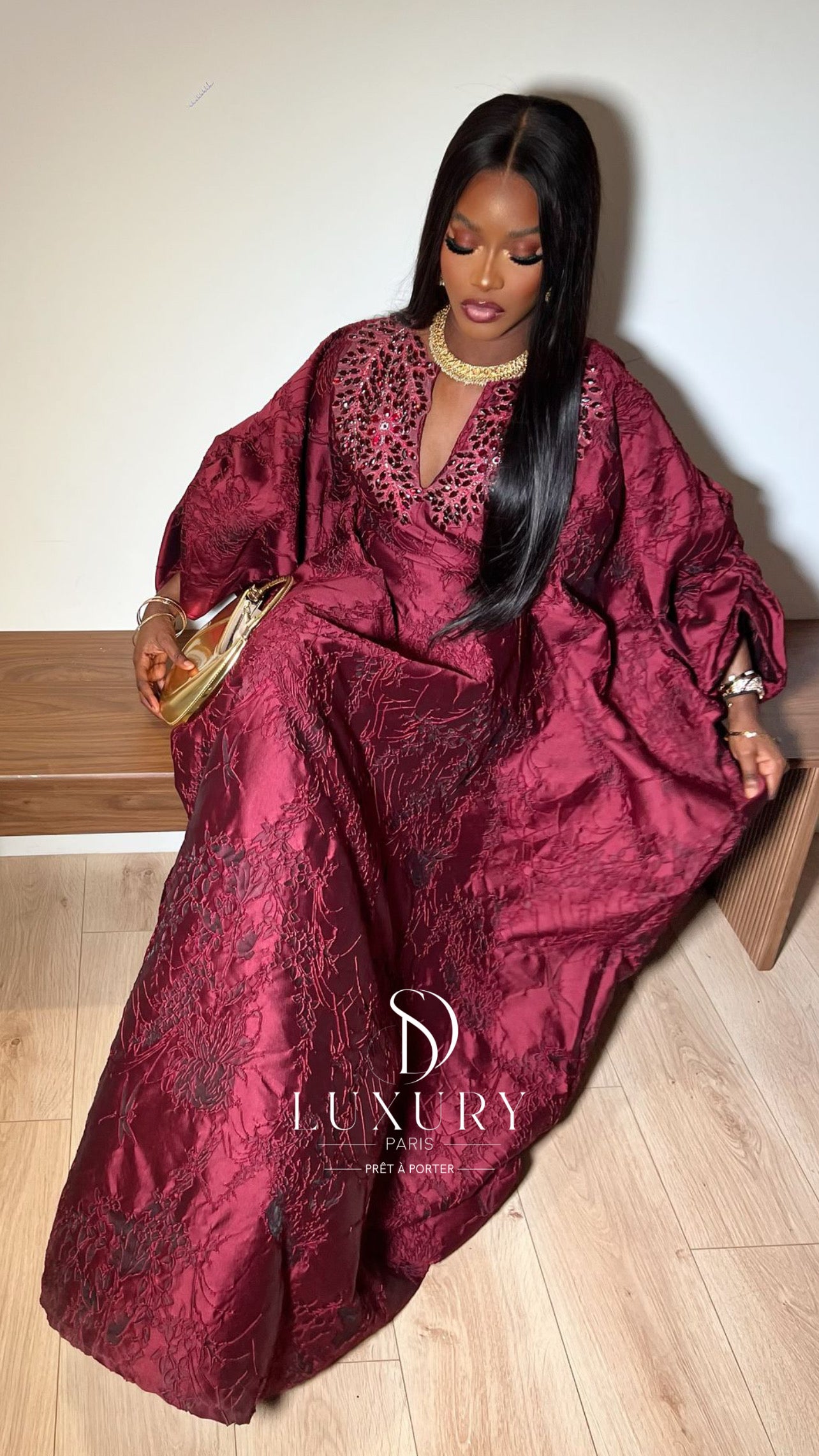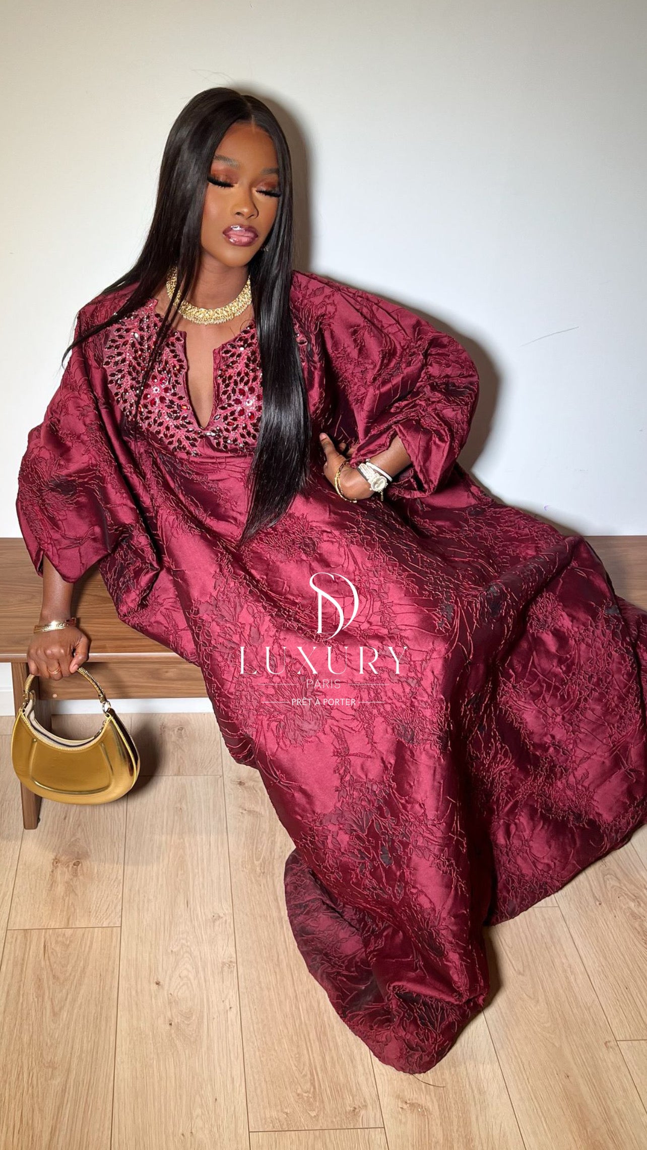 - Le haut de ce boubou se distingue par un col , orné de somptueux cristaux. Les manches sont finement travaillées et ajoutent une touche d’élégance à votre boubou.