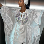 - Le haut de ce boubou se distingue par un col , orné de somptueux cristaux. Les manches sont finement travaillées et ajoutent une touche d’élégance à votre boubou.
