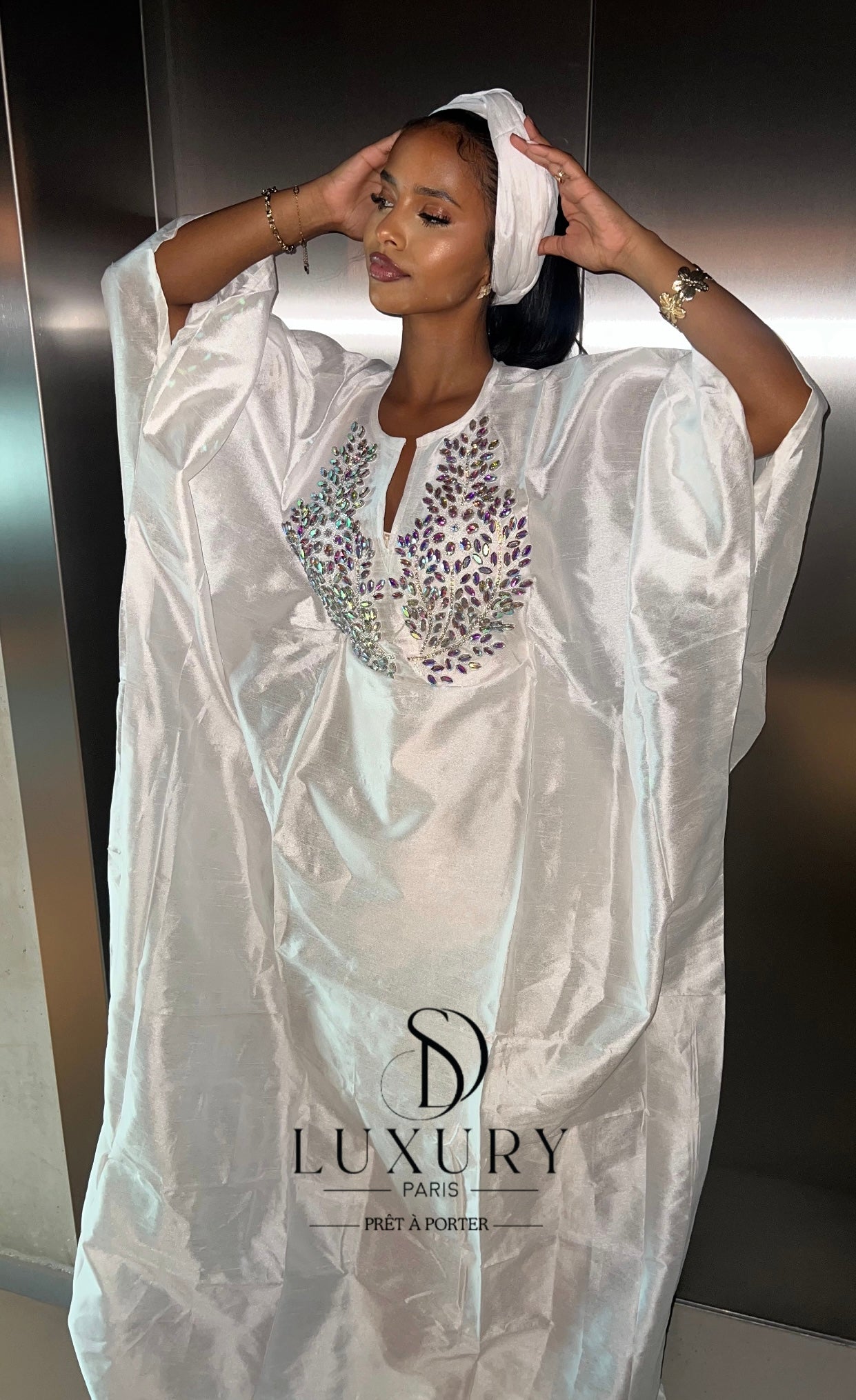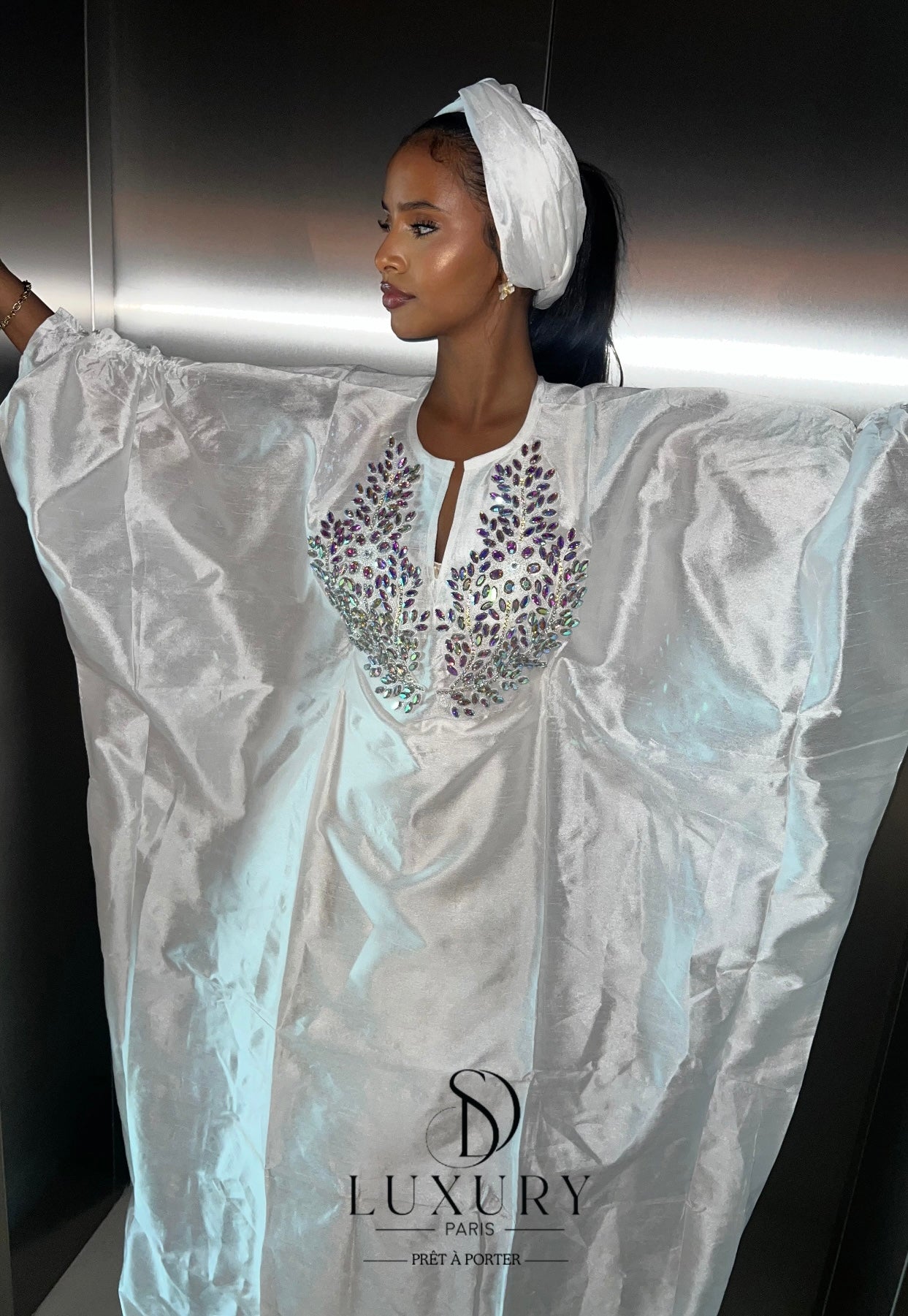 Tissus et cristaux choisis minutieusement afin d’opter pour une originalité absolue.