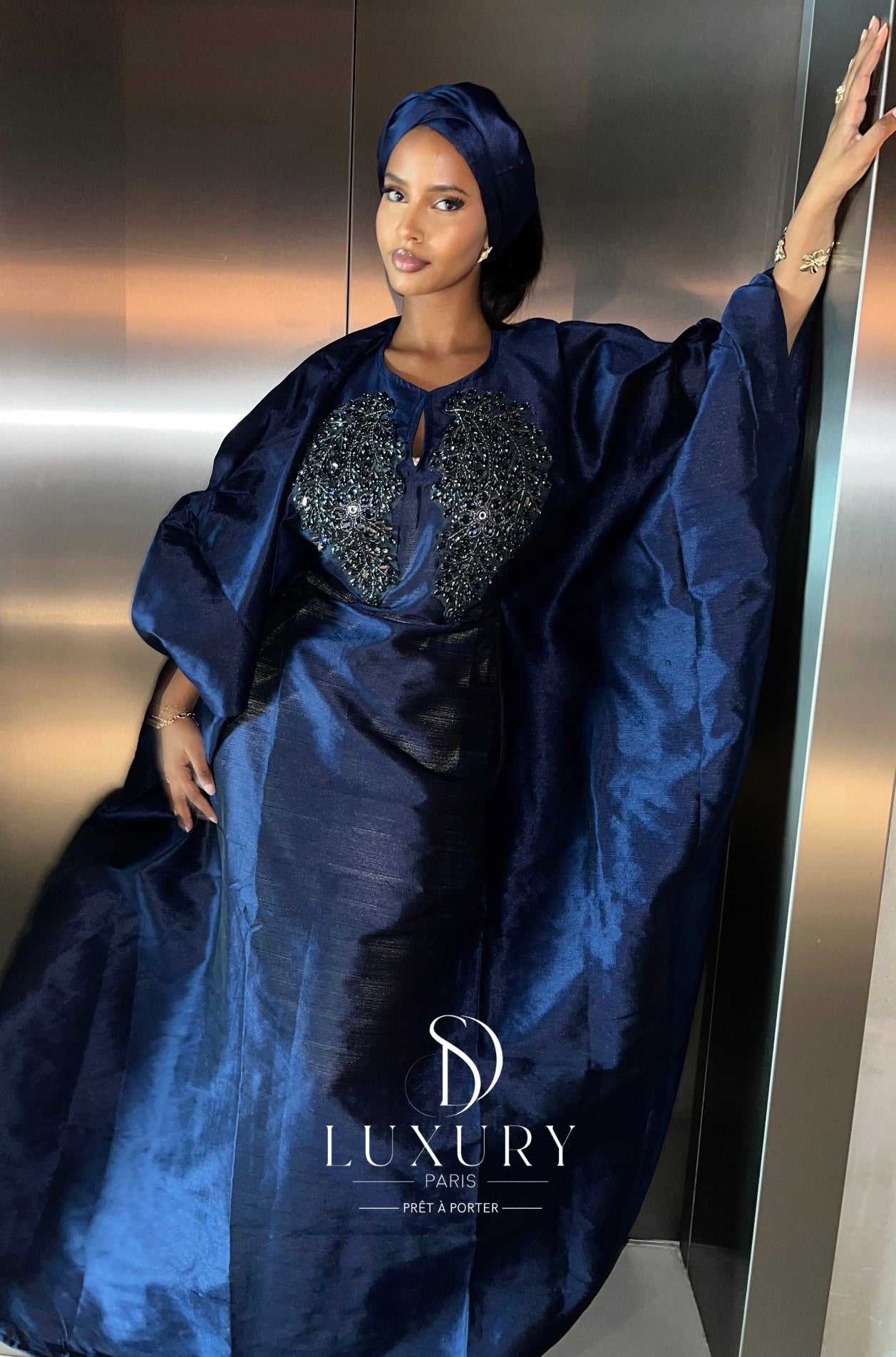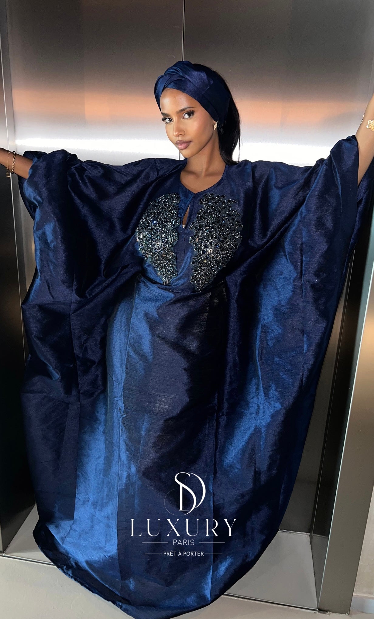 - Le haut de ce boubou se distingue par un col , orné de somptueux cristaux. Les manches sont finement travaillées et ajoutent une touche d’élégance à votre boubou.